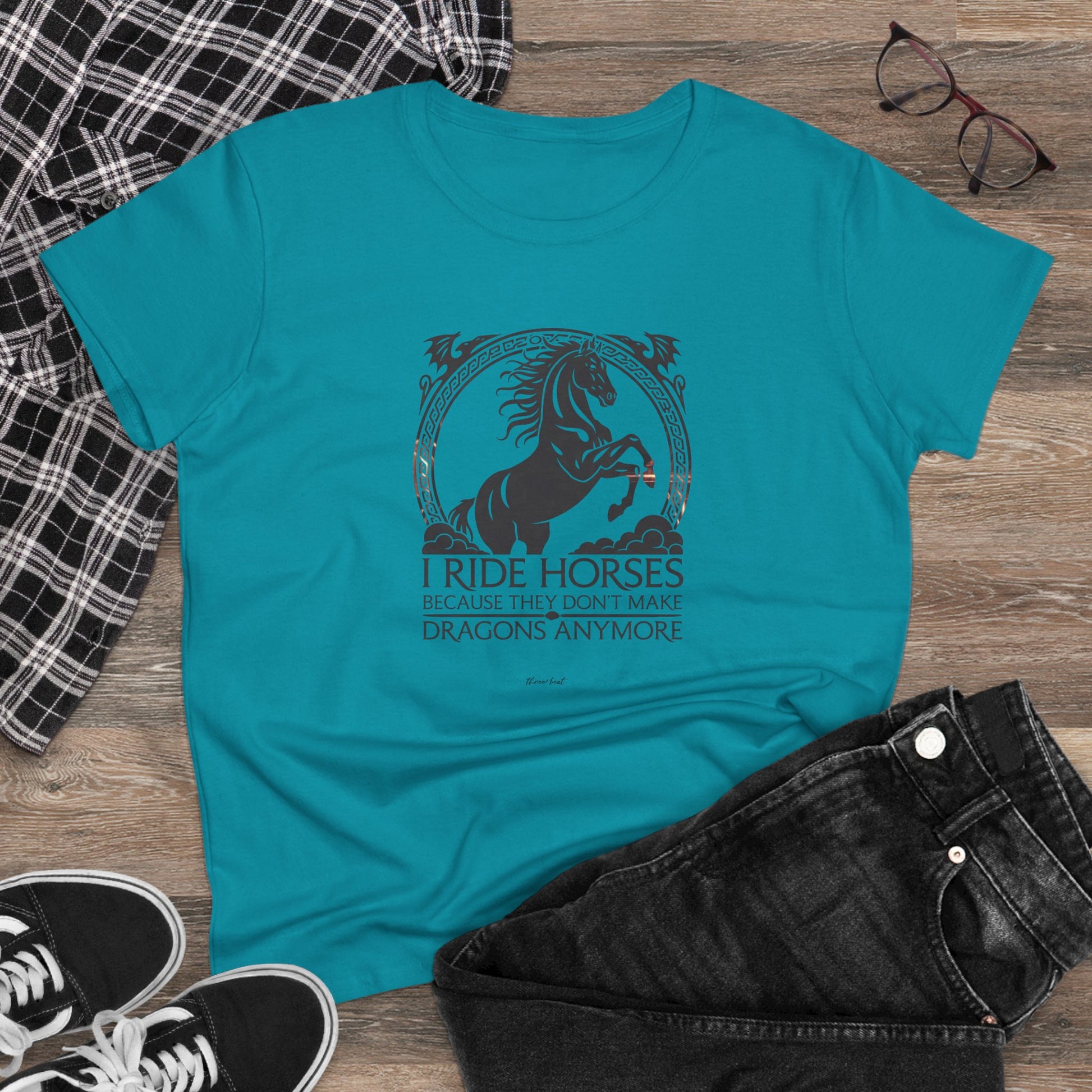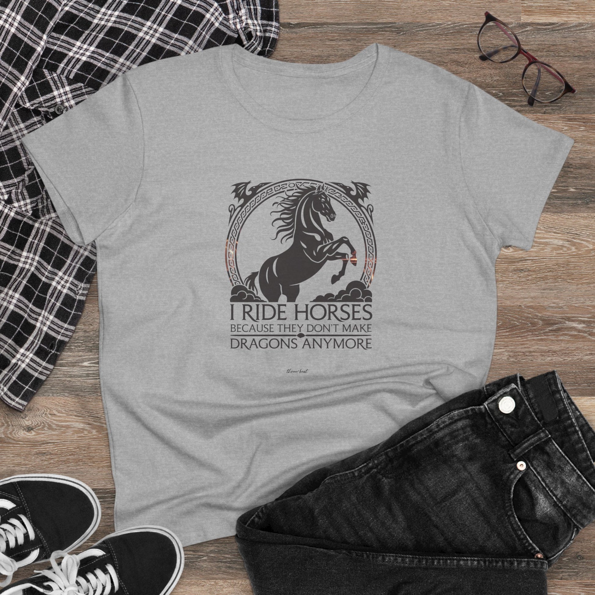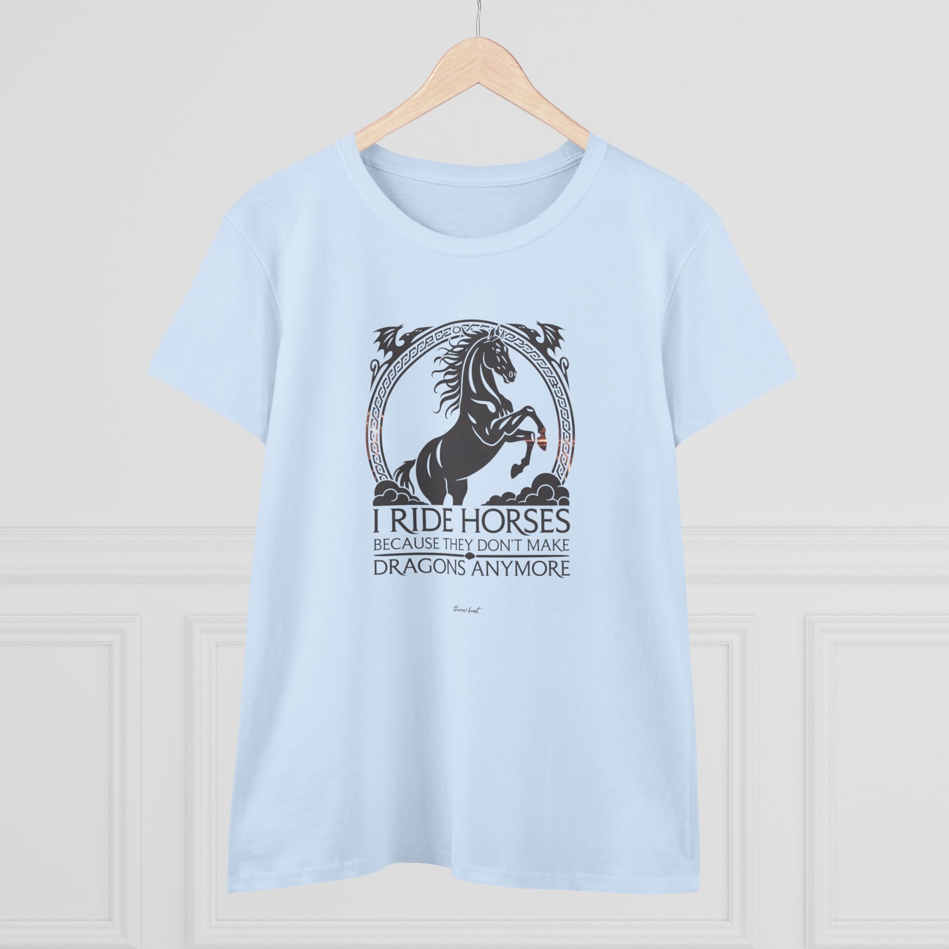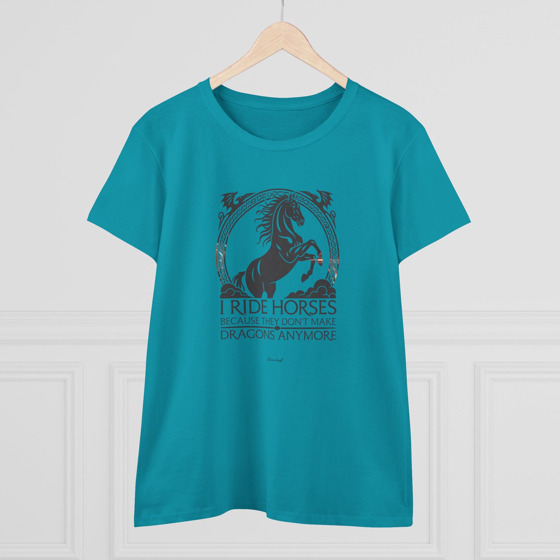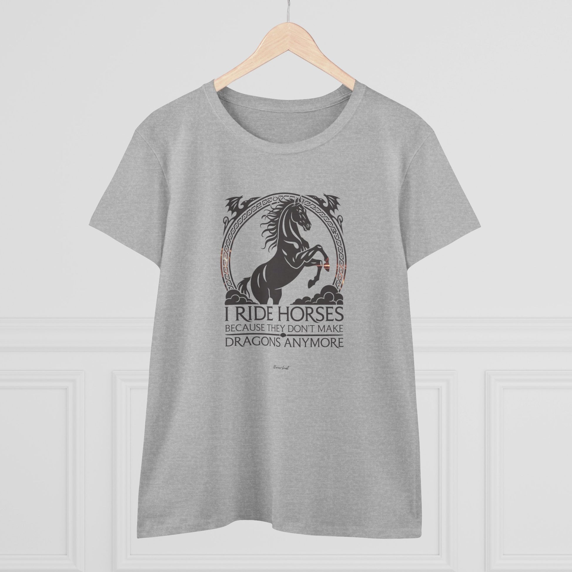 Light, comfortable, and quietly bold — this midweight cotton tee carries a vintage-inspired equestrian design that speaks to anyone who lives for horses and the quiet freedom of the trail. The graphic’s ornate frame and rearing horse silhouette give the shirt a slightly mythic feel, like a favorite story you wear. It settles softly against the skin with a semi-fitted cut and midweight body so it layers easily under jackets or stands on its own during breezy afternoons at the barn. Wear it to tack rooms, local shows, or slow weekend rides to show your steady love for horses without shouting. The muted palette and timeless artwork age gracefully; the tear-away label keeps it comfortable for long days spent grooming, saddling, or lingering at the fence line.
